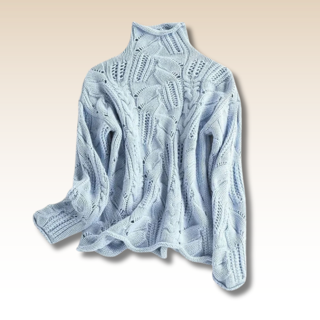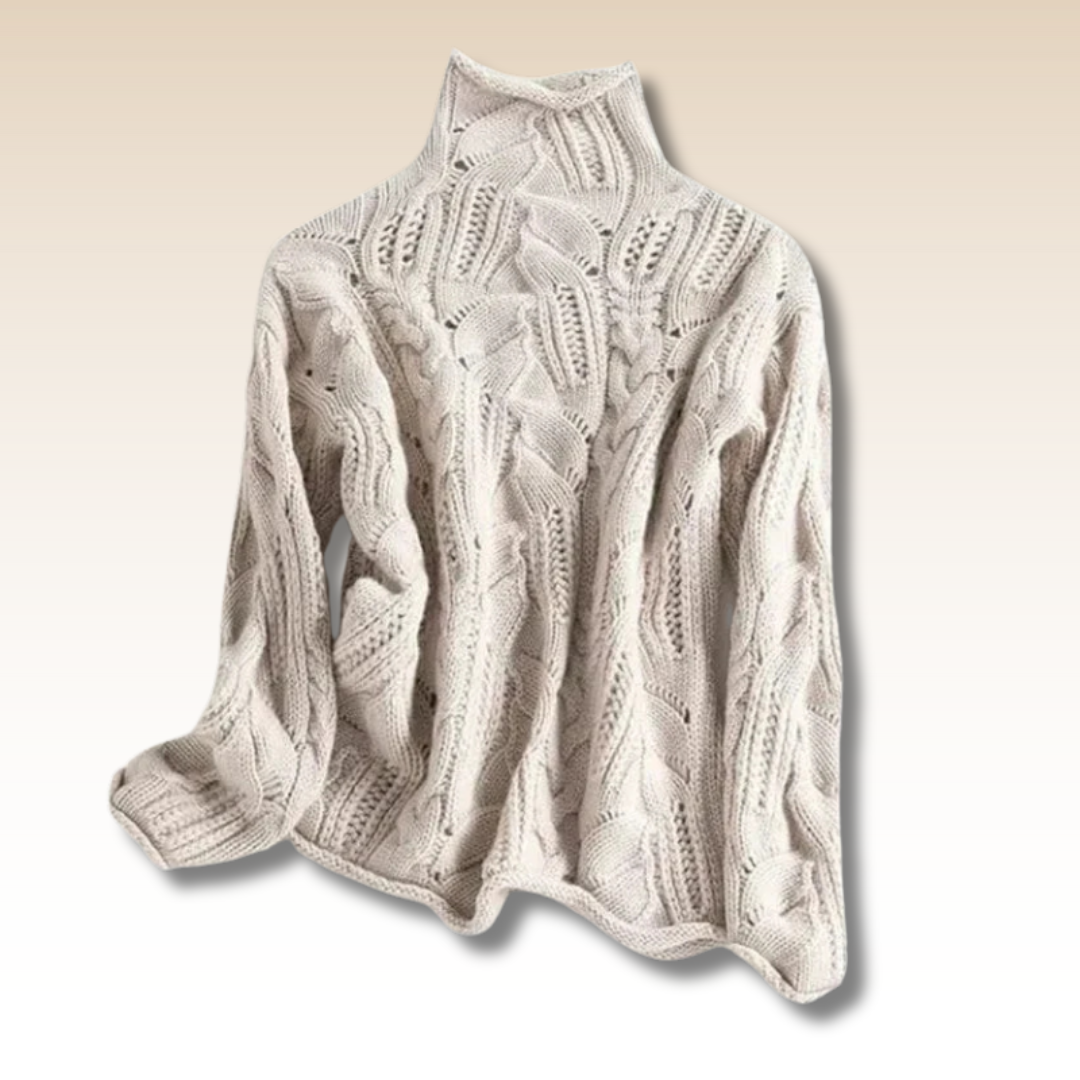 Det intrikata flätstickade mönstret ger polotröjan en tidlös karaktär. Det är inte bara en tröja – det är en detalj som lyfter hela din look och gör dig enkelt chic.